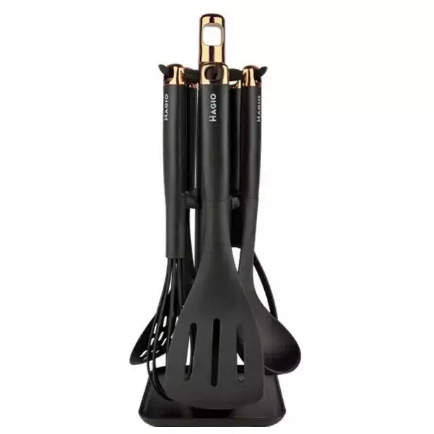 Набор кухонный MG-1127 — практичные принадлежности из пластика и нейлона. Идеально подходит для всех ваших повседневных кулинарных потребностей. Благодаря подставке можно легко хранить их на кухонной столешнице.