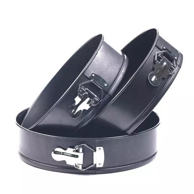 Набор разъемных форм для выпечки Con Brio 3 шт - это набор из трех разъемных круглых форм для выпечки бисквита. Изготовлены из высококачественной углеродистой стали с безопасным антипригарным покрытием. Такое покрытие облегчает готовку и уход за посудой.