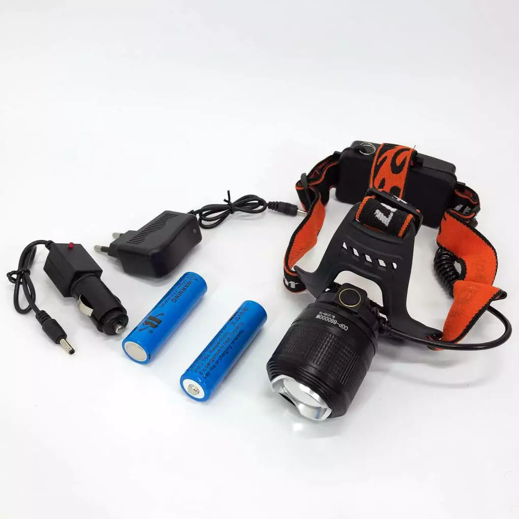 Работает налобный тактический фонарик POLICE BL-2199-T6 от двух аккумуляторов Li-ion 18650 8800 mAh 3.7V, которые располагаются в отдельном блоке, через который их также можно зарядить, в комплекте имеется зарядка от сети 220 и от прикуривателя.