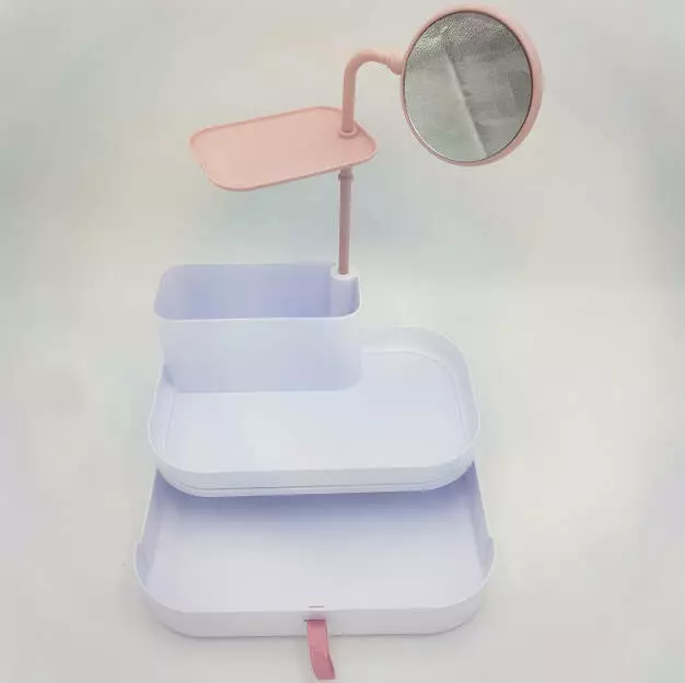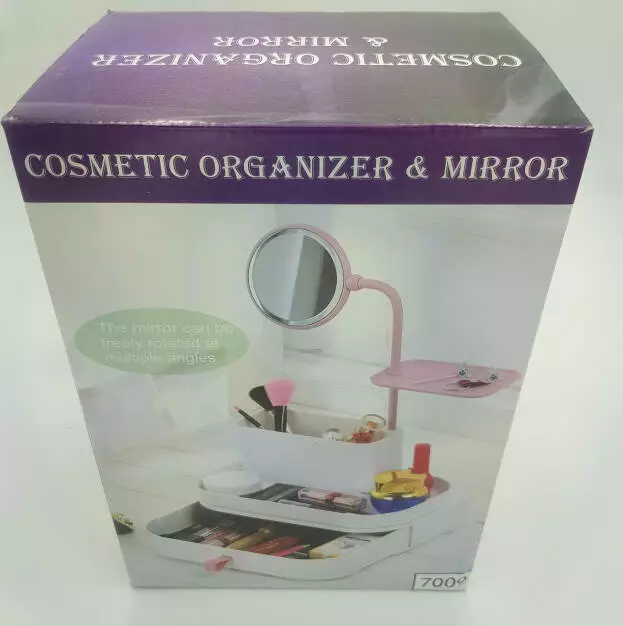 Настольный бокс для хранения косметики с выдвижными ящиками и зеркалом органайзер