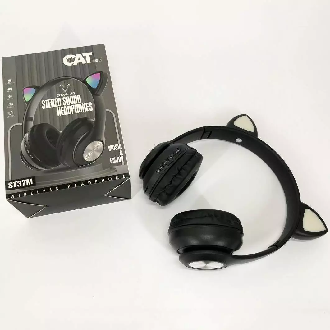 Наушники накладные беспроводные ST37M со светящимися кошачьими ушками. Цвет: черный