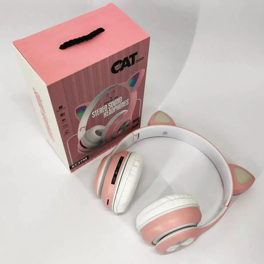 Беспроводные наушники ST37M – это подарок, способный вызвать у каждого море эмоций радости и счастья. Приятный цвет, милый дизайн и функция MP3 покорят ваше сердце. Размер наушников подойдет как ребенку, так и взрослому благодаря продуманной системе регулирования. Их можно использовать как в повседневной жизни, так и при занятиях спортом благодаря удобному и надежному ободку. А милые кошачие ушки с LED подсветкой, станут оригиинальным дополнением.