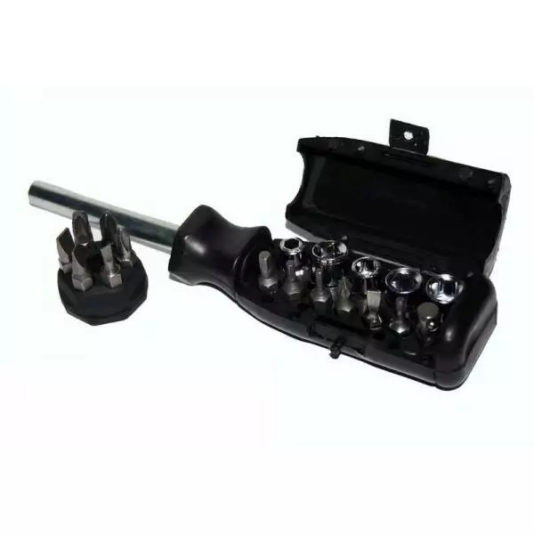 Для ремонта или монтажа мебели, приборов, каких-либо устройств под рукой никогда не находится нужных инструментов, и их поиски затягивают время выполнения работы и портят настроение? Знакомая ситуация? Тогда Вам обязательно понравится отвертка с насадками UKC TOOL QC002. Этот замечательный инструмент имеет 18 разных насадок (бит), надевающихся на стержень-держатель. Здесь есть насадки с шлицами (крестовыми и прямыми), шестигранники и звездочки разных размеров. Такой комплект сможет обеспечить Вас нужными отвертками во всех возникающих ситуациях, требующих вмешательства этого инструмента.