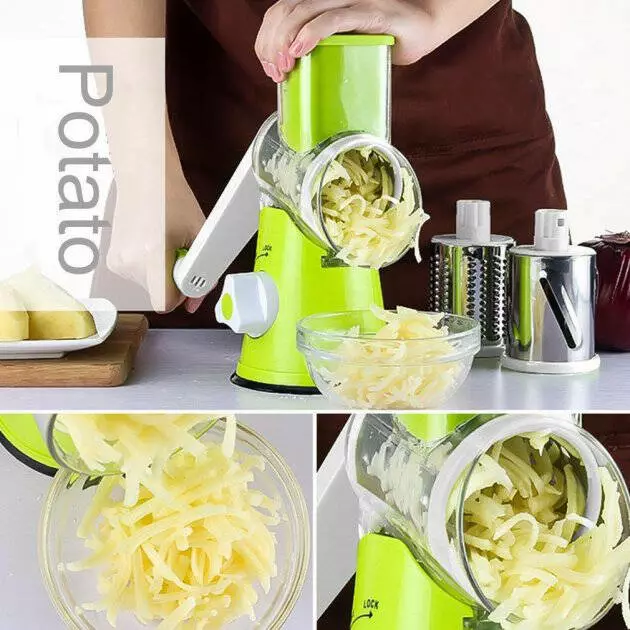 Овощерезка мультислайсер Tabletop Drum Grater Kitchen Master Терка для овощей и фруктов 3 насадки. Цвет: зеленый