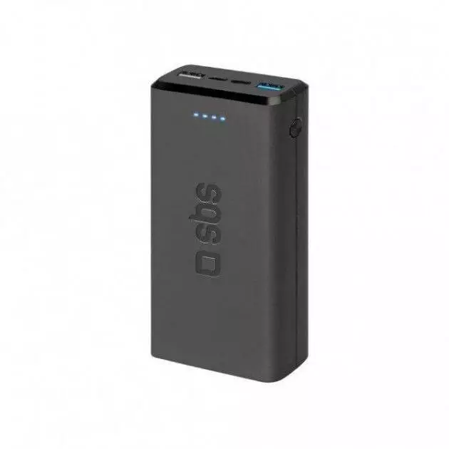 Повербанк SBS 20000 MAH оборудован четырьмя светодиодами, сигнализирующими о оставшейся величине емкости, каждый из которых соответствует 25% от ее максимального значения.