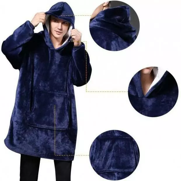 Плед толстовка с капюшоном и рукавами Huggle Hoodie оверсайз. Цвет: синий