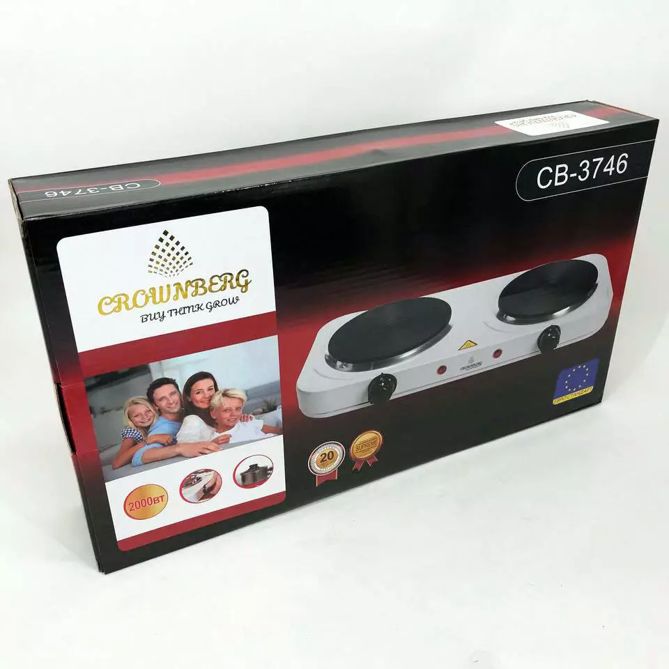 - Плиту Crownberg CB-3746 можно с легкостью транспортировать в любое подходящее место, ведь ее работоспособность зависит исключительно от наличия сети электропитания.