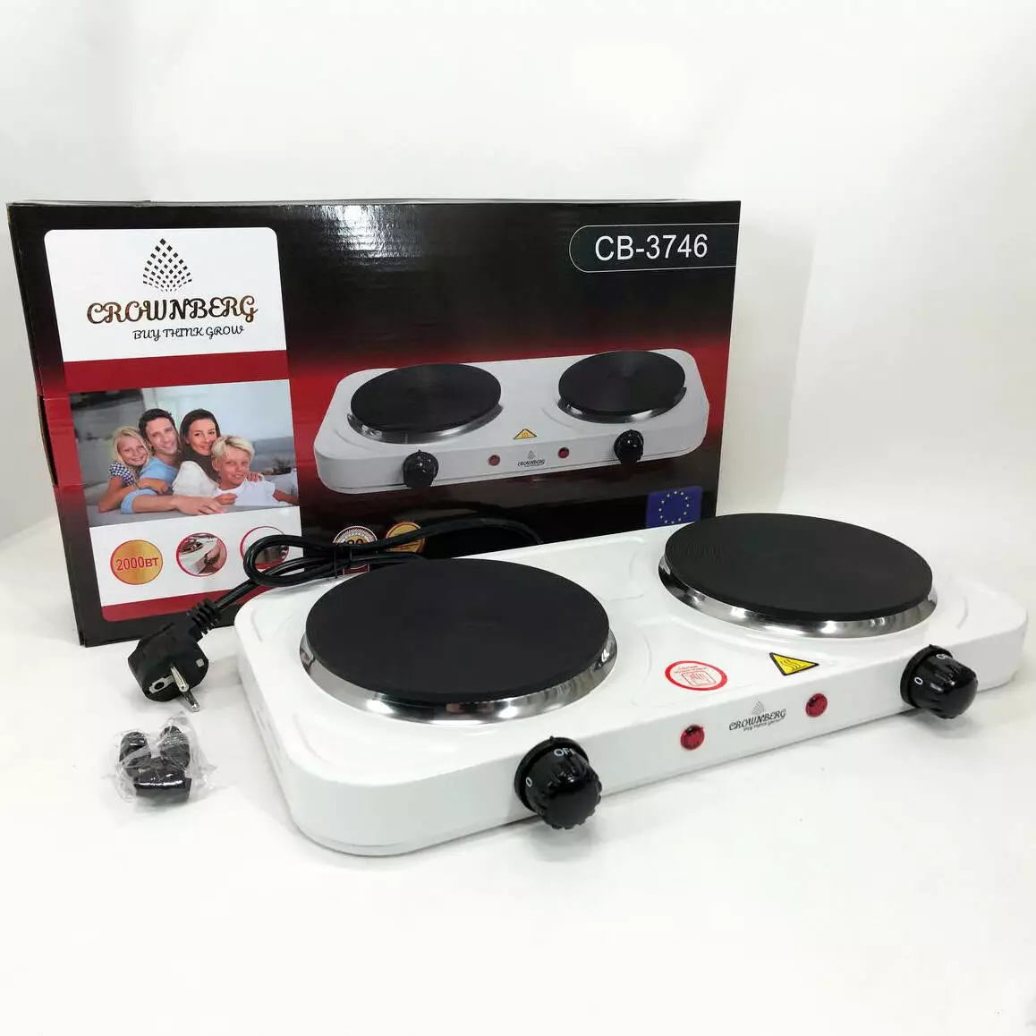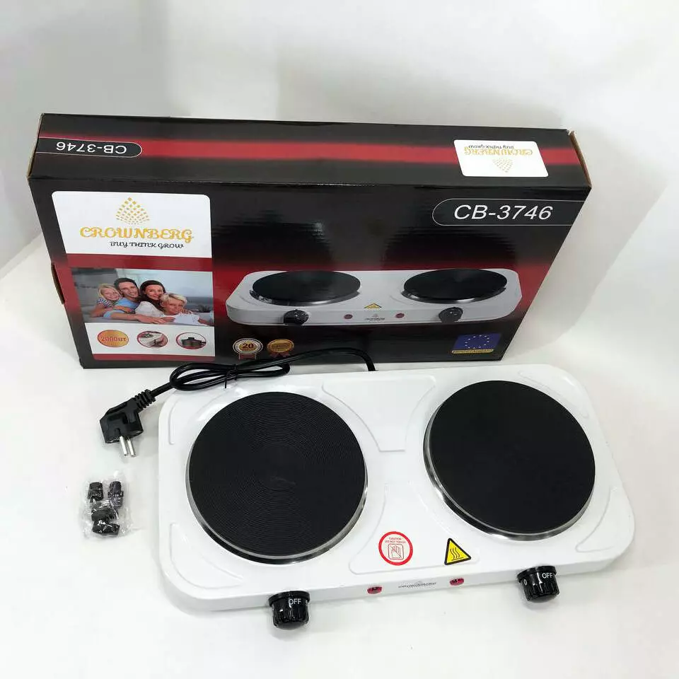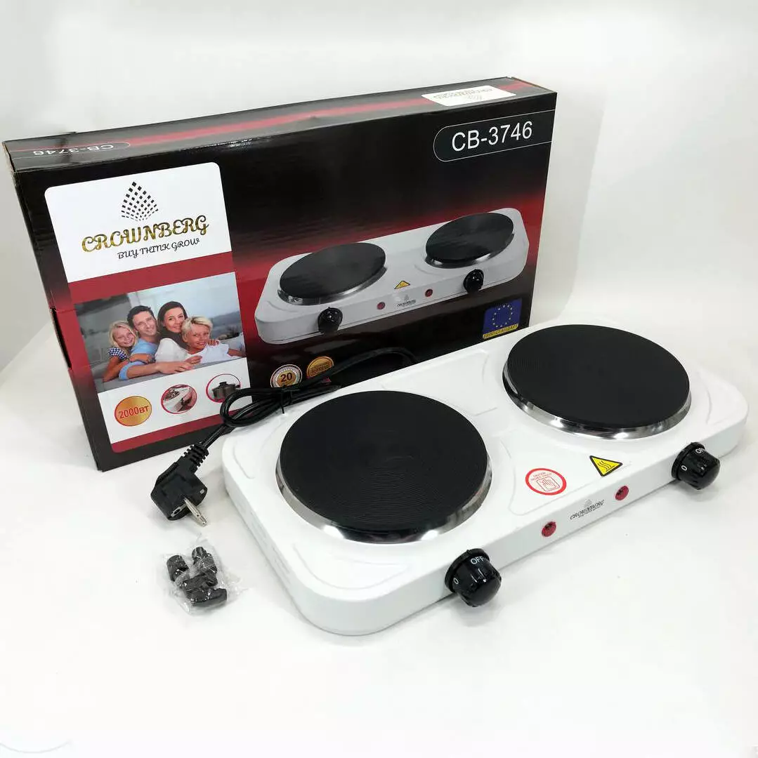 Плита электрическая настольная бытовая Crownberg CB-3746 двухконфорочная дисковая кухонная плита 2000 Вт
