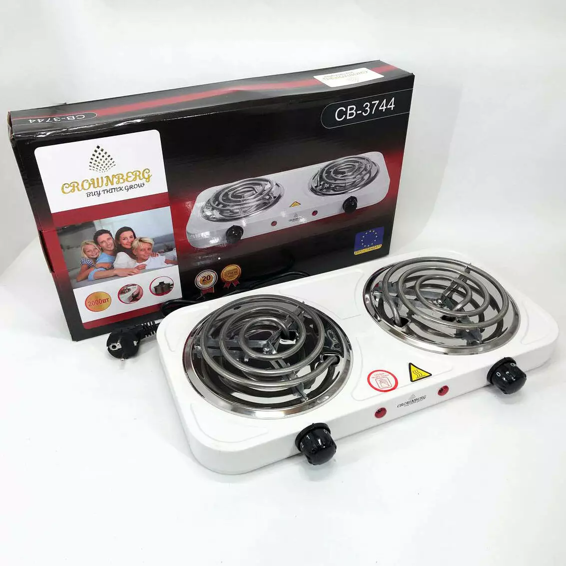 Плита электрическая настольная Crownberg CB-3744 двухконфорочная спиральная 2000 Вт