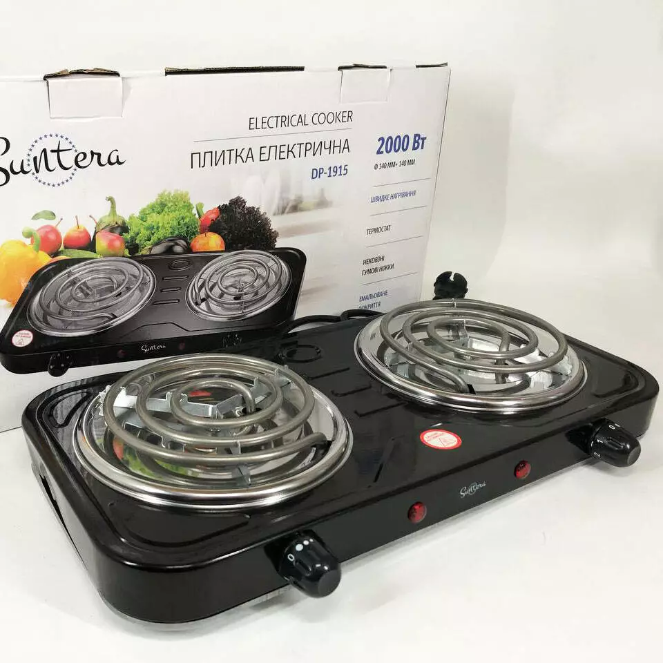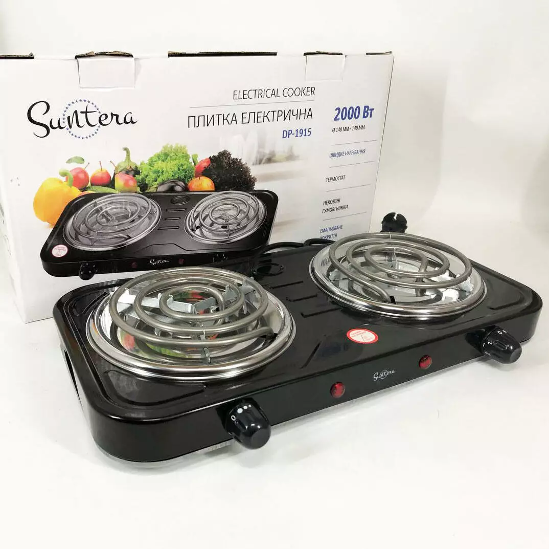Плита электрическая Suntera DP-1915, электроплита 2 конфорки, плита двухкомфорочная. Цвет: черный