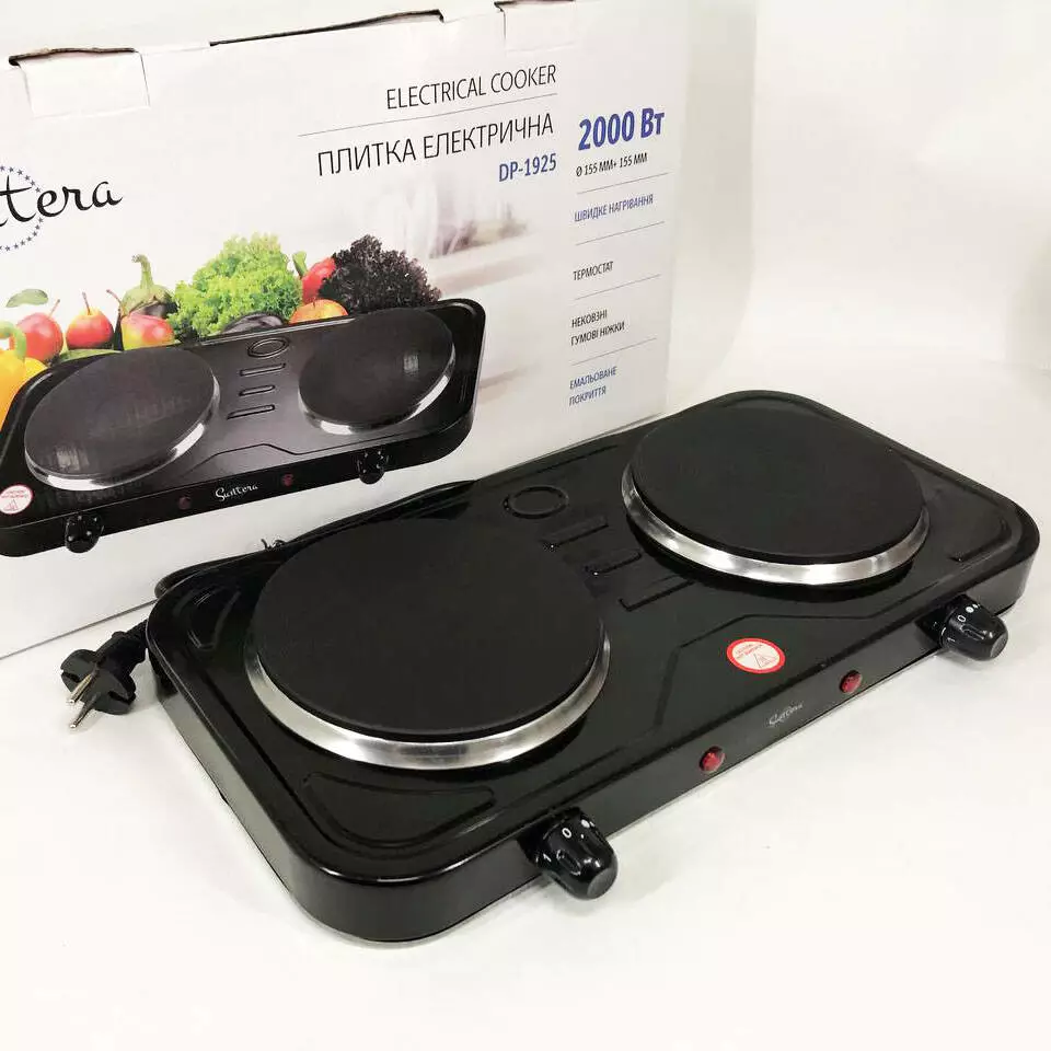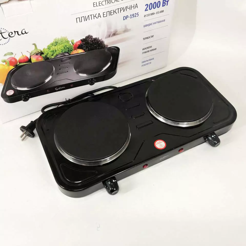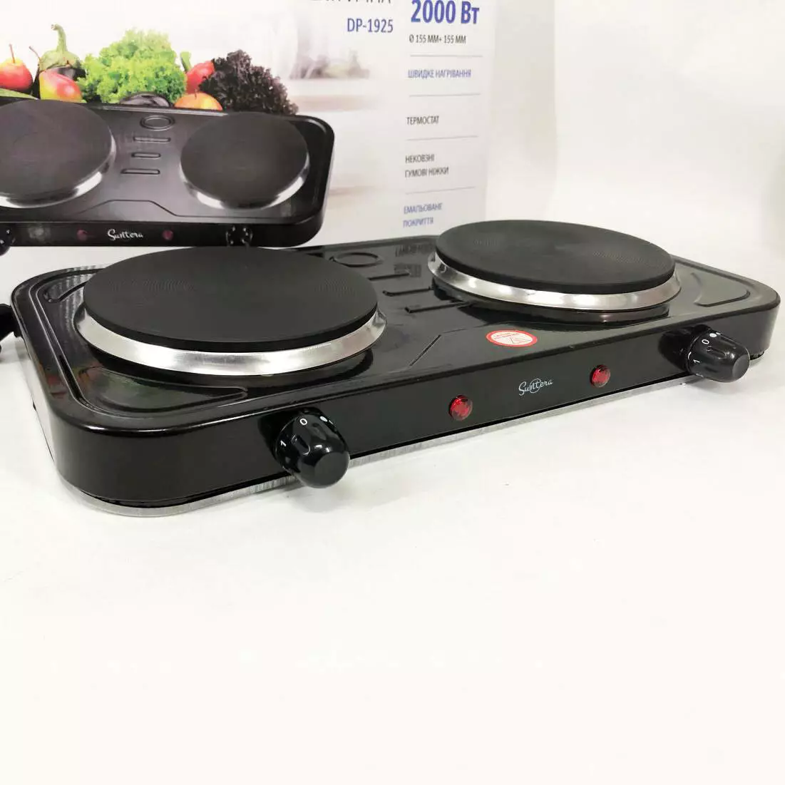 Плита электрическая Suntera DP-1925, электроплита двойная, мощная настольная электроплита. Цвет: черный