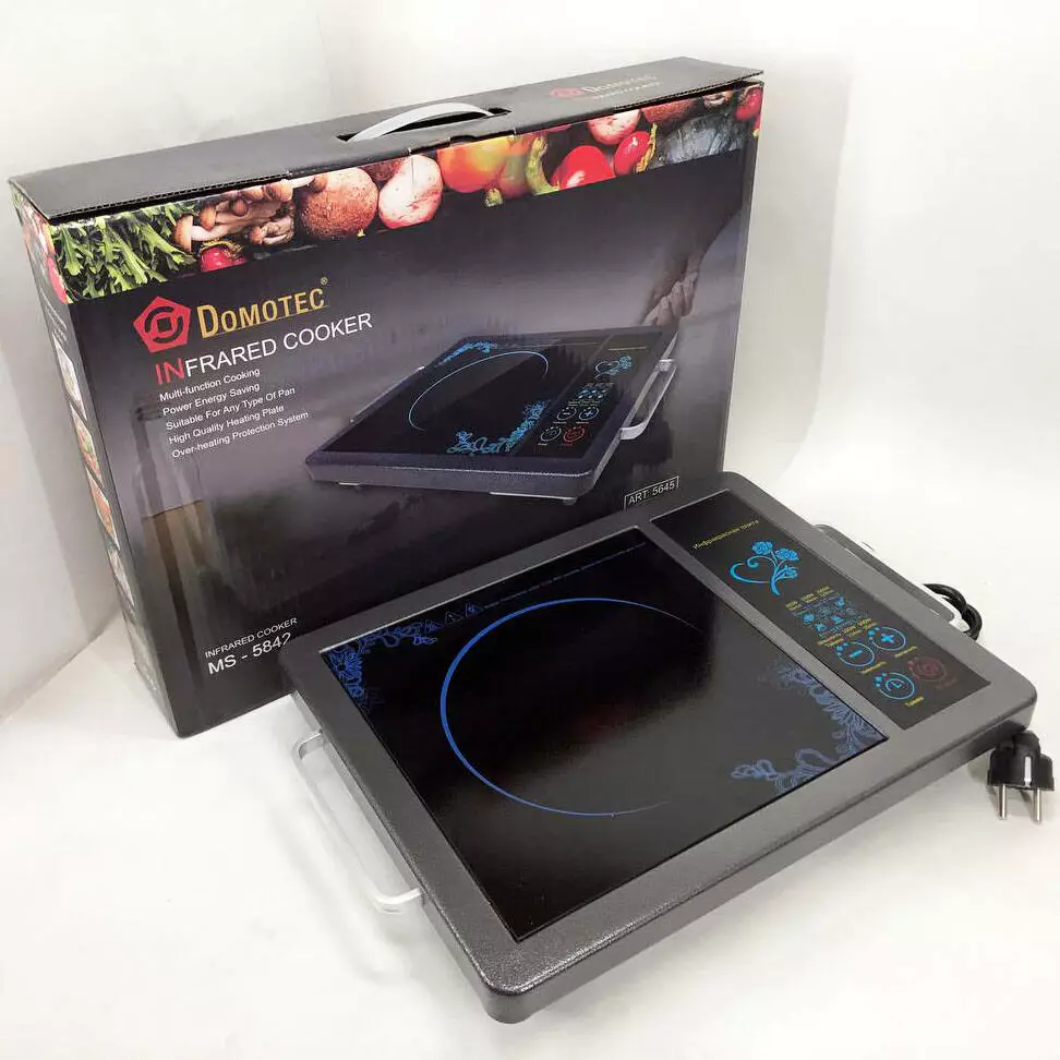 Среди множества кухонных бытовых плит на рынке, выделяется инфракрасная электроплита Domotec MS 5842 с мощностью 2000 Вт и практичностью в использовании. Принцип работы электроплиты очень простой. Состоит он в том, что инфракрасная электроплита нагревает свою стеклокерамическую поверхность при помощи инфракрасного излучения. На верхней панели плиты находятся сенсорные кнопки, которые обеспечивают легкое управление.
