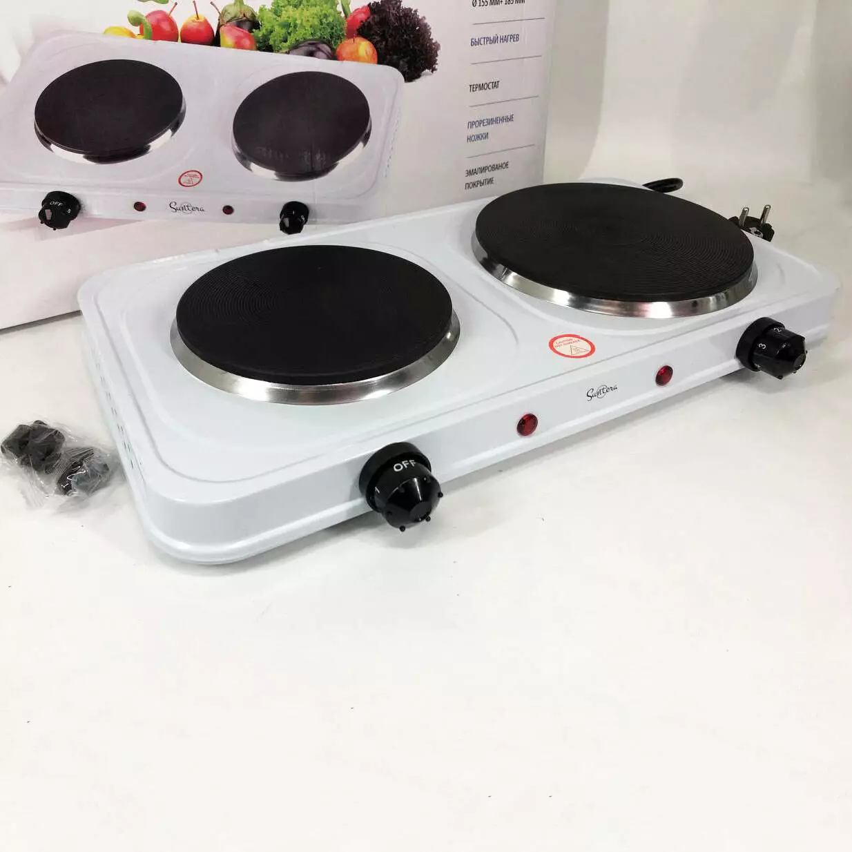 Плитка электрическая Suntera DP-1935B, 2500W, 2 конфорки разного диаметра, 2 конфорки. Цвет: белый