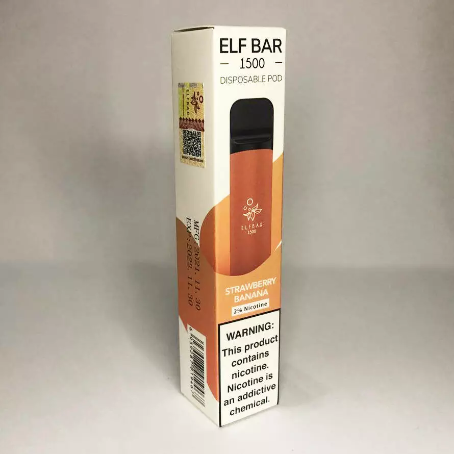 Pod-система 2% (АНГЛ) одноразовая электронная Elf Bar (Эльф Бар) 1500 затяжек 850mAh. Европейская версия. Клубника банан