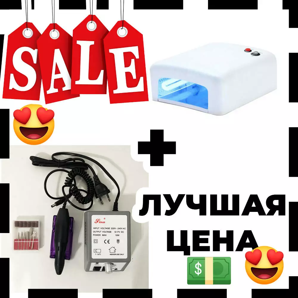 Подарочный набор: лампа для маникюра с таймером ZH-818 + фрезер для маникюра Beauty nail DM-14
