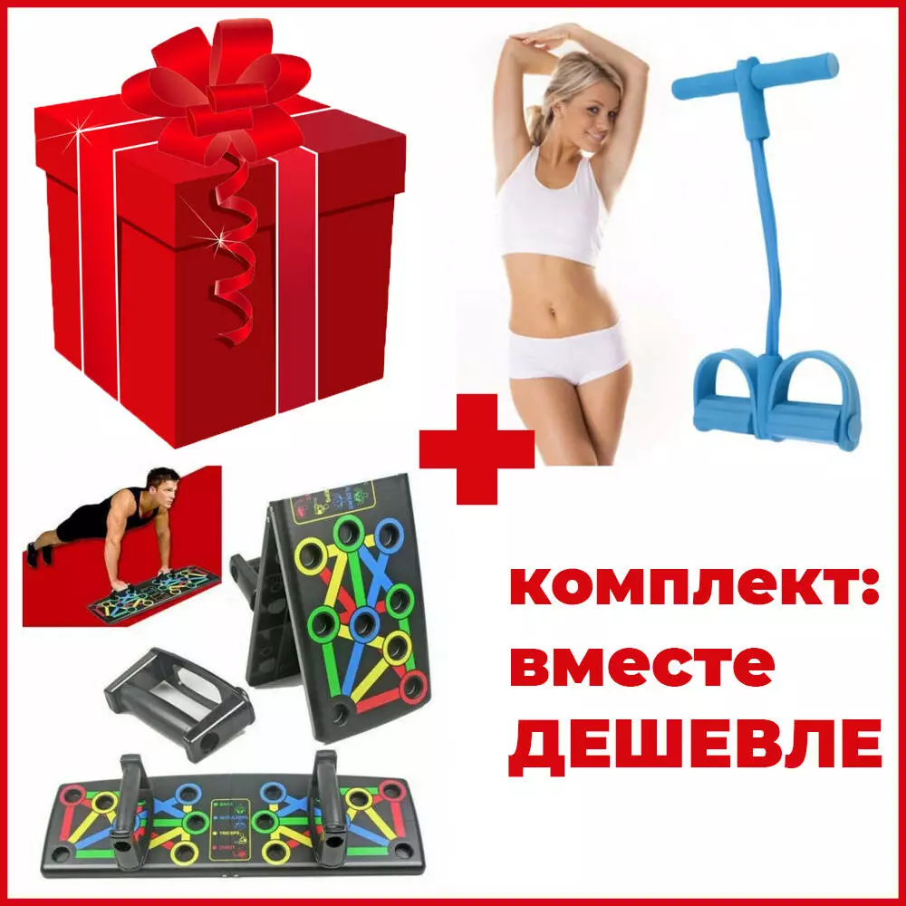 Подарочный набор: тренажер для фитнеса Pull Reducer + тренажер для отжиманий Foldable Push Up