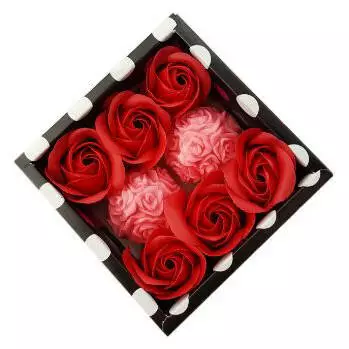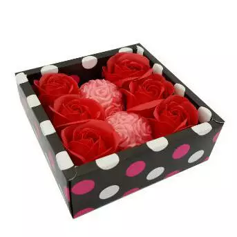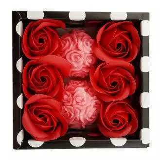 рукой̆. В наборе 8 штук мыла двух форм и цветов: 6 ярко красных роз