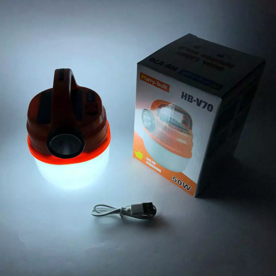 HURRY BOLT HB-V70 Подвесной фонарь светильник LED с крючком для кемпинга с аккумулятором, фонариком и солнечной панелью.