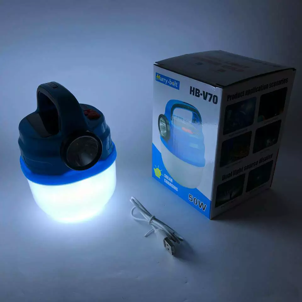 HURRY BOLT HB-V70 Подвесной фонарь светильник LED с крючком для кемпинга с аккумулятором, фонариком и солнечной панелью.