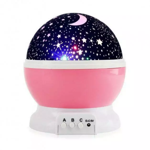 Круглый вращающийся Проектор звездного неба Star Master Dream прекрасный подарок для вашего ребенка. Он осветит комнату вашего малыша прекрасными звездами и луной. Питание светильника возможно от USB-провода или от четырех батареек типа АAA.