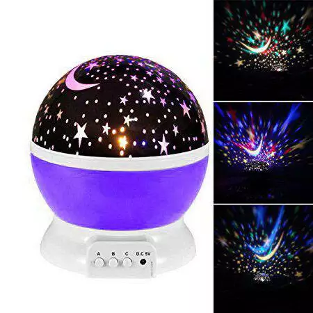 Круглый вращающийся Проектор звездного неба Star Master Dream прекрасный подарок для вашего ребенка. Он осветит комнату вашего малыша прекрасными звездами и луной. Питание светильника возможно от USB-провода или от четырех батареек типа АAA.