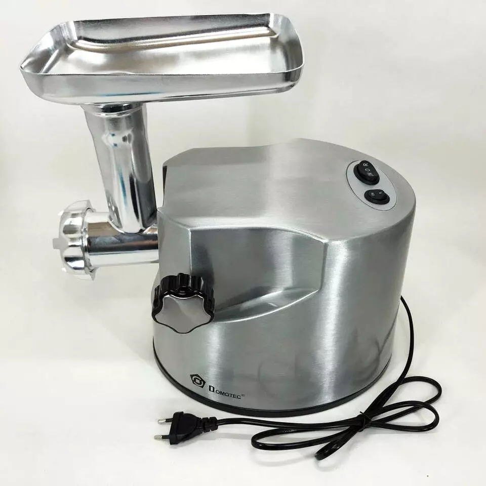 Электрическая мясорубка Domotec MS-2021 - такой подарок порадует любую хозяйку и облегчит ей приготовление любимых блюд.При помощи этой мясорубки можно быстро приготовить качественный фарш для котлет, пельменей, тефтелей, голубцов и других вкуснейших кулинарных шедевров, а также фруктовый и овощной соки.Функция реверса решает проблему наматывания жил на шнек.В комплекте идут три решетки разного диаметра для изменения степени помола мяса.