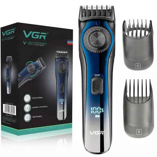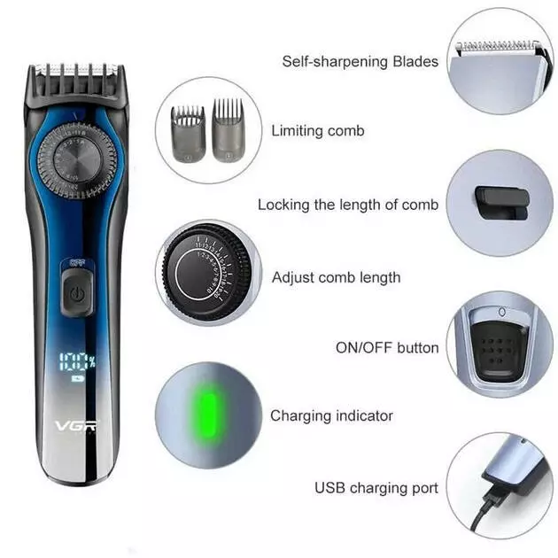 Профессиональный аккумуляторный триммер для бороды и усов с дисплеем VGR V-080 и регулятором длины