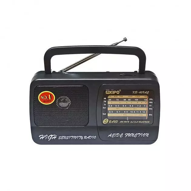 Радиоприёмник Kipo KB 409 АС ― плавные линии корпуса, большой указатель частот, телескопическая антенна ― простой, но имеющий все необходимые для радиоприема аппарат. При необходимости может работать на обычных батарейках и от сети 220 V. Надежный радиоприёмник, расширенный FM диапазон.