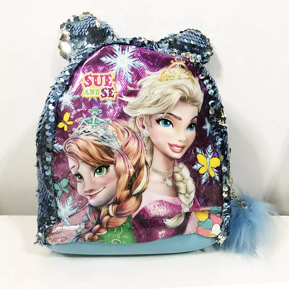 Каждая девочка по достоинству оценит главную героиню этого рюкзачка – принцессу из мультиков, а двухцветные паетки позволяет менять цвет внешней стороны изделия просто одним движением руки. Рюкзачок выполнен из качественных материалов, а сзади имеет удобные лямки для ношения на плечиках.