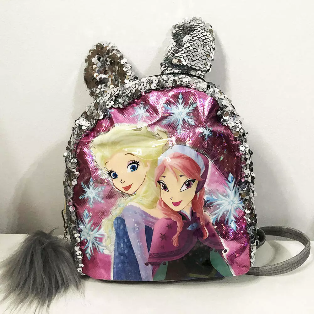 Каждая девочка по достоинству оценит главную героиню этого рюкзачка – принцессу из мультиков, а двухцветные паетки позволяет менять цвет внешней стороны изделия просто одним движением руки. Рюкзачок выполнен из качественных материалов, а сзади имеет удобные лямки для ношения на плечиках.