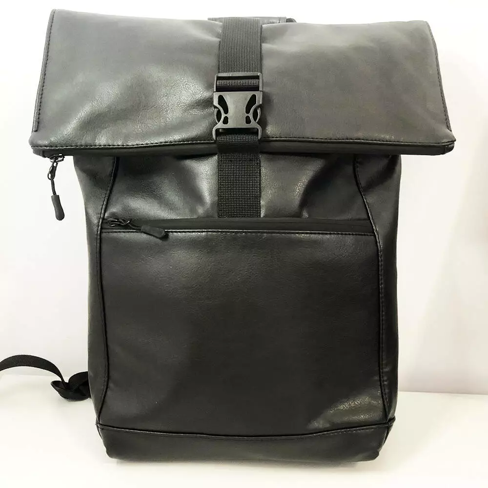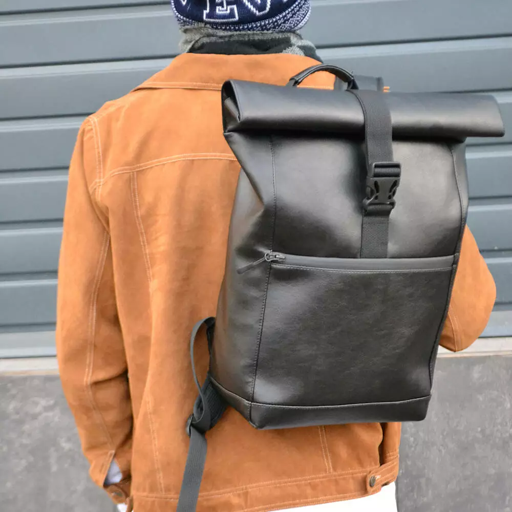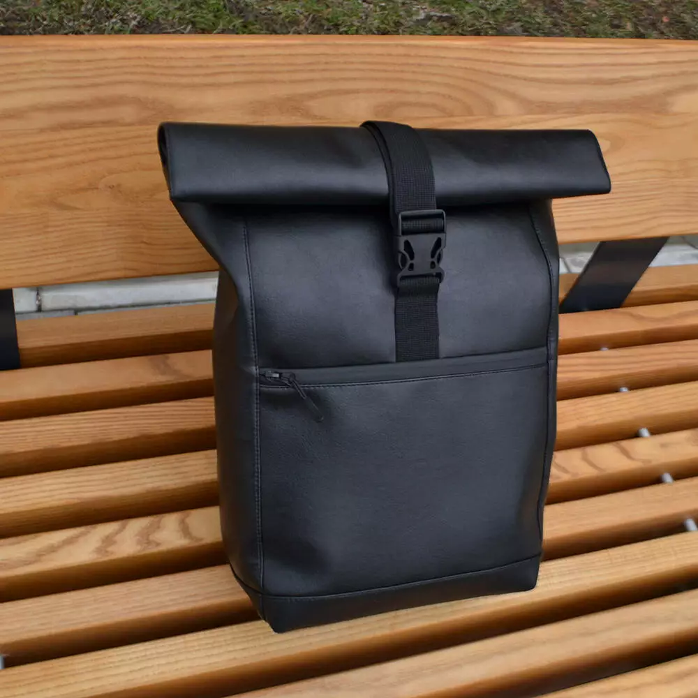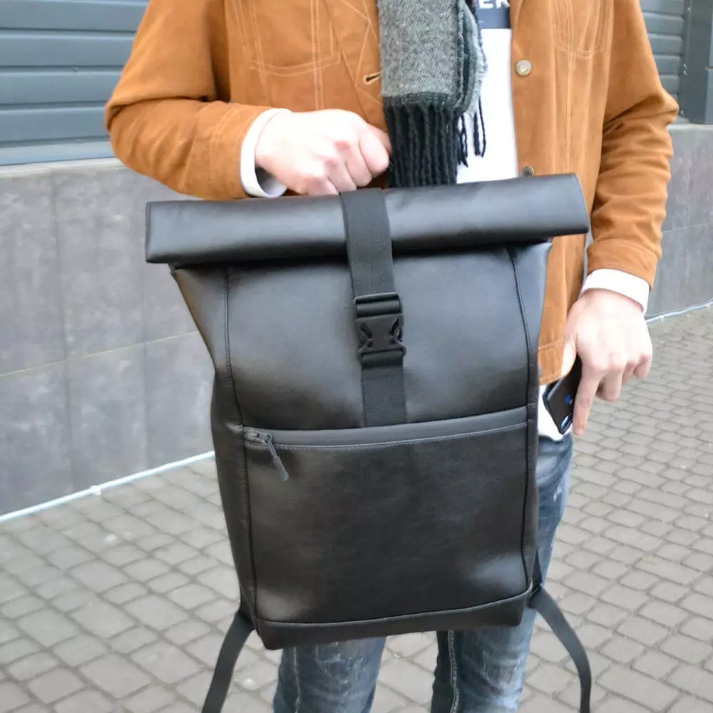 Рюкзак Ролл Топ из эко-кожи. Дорожная сумка, сумка для похода. Модель 3737. Цвет: черный