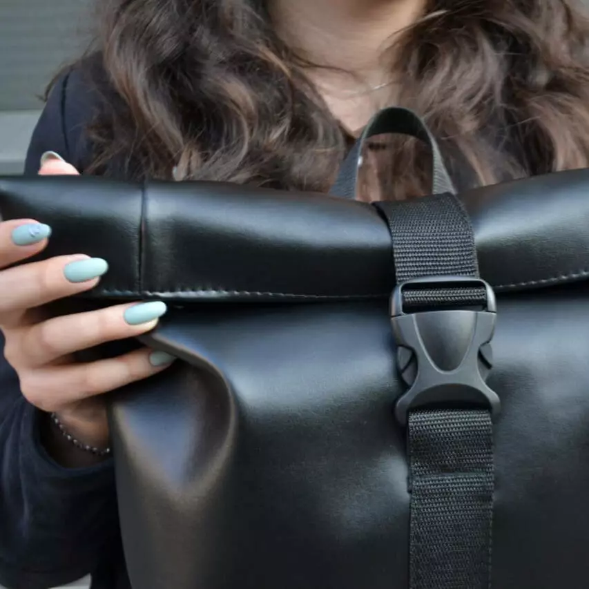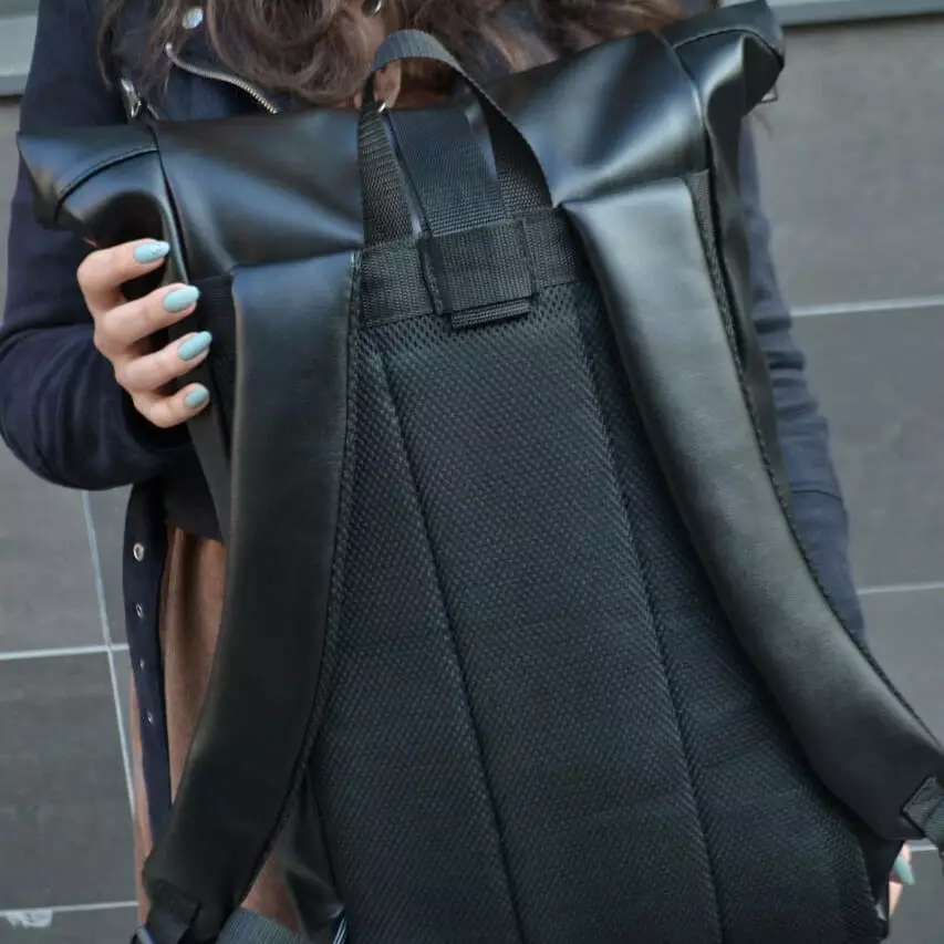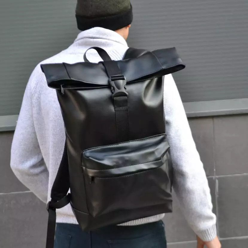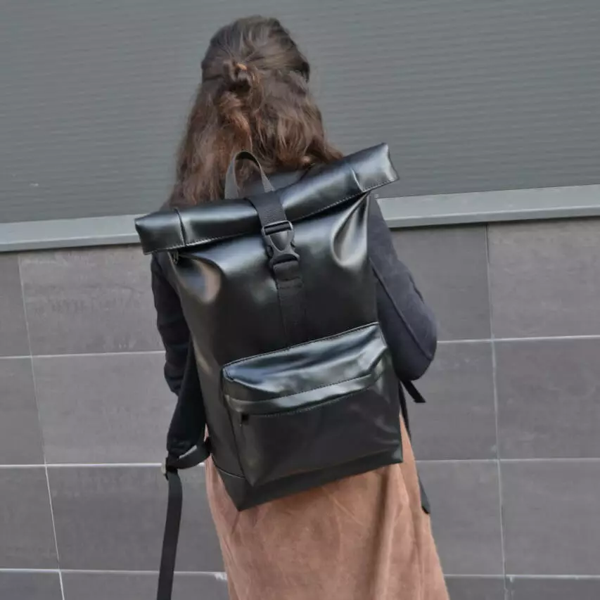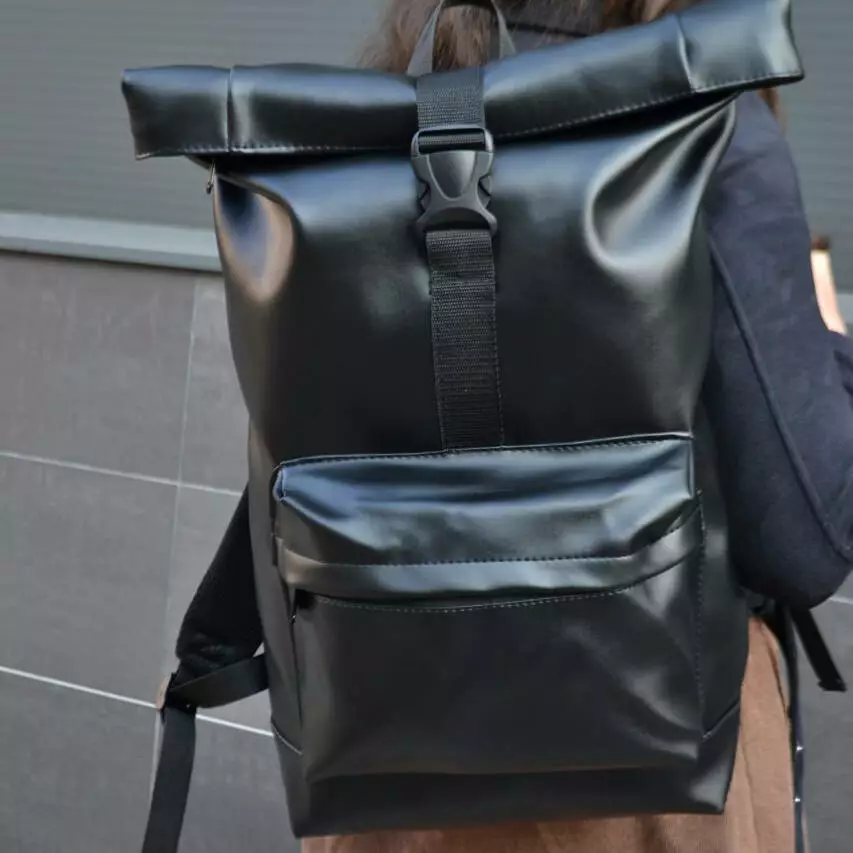 Рюкзак ролл-топ из эко кожи качественный, надежный. Цвет: черный