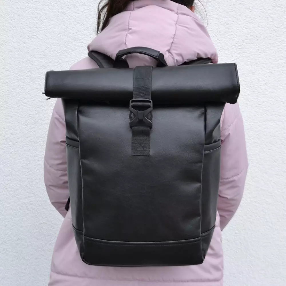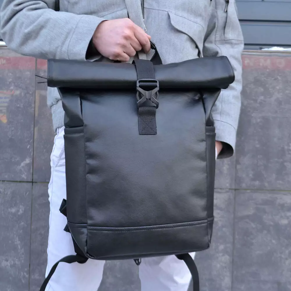 Рюкзак ролл-топ женский/мужской. Из эко-кожи. С секцией для ноутбука. Модель: 9741. Цвет: черный