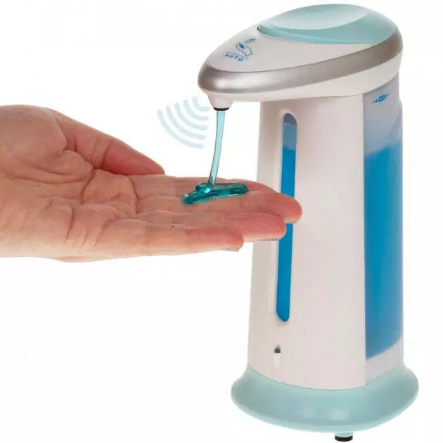 - Просто поднесите руку к дозатору, сработает датчик движения и диспенсер выдаст порцию мыла;