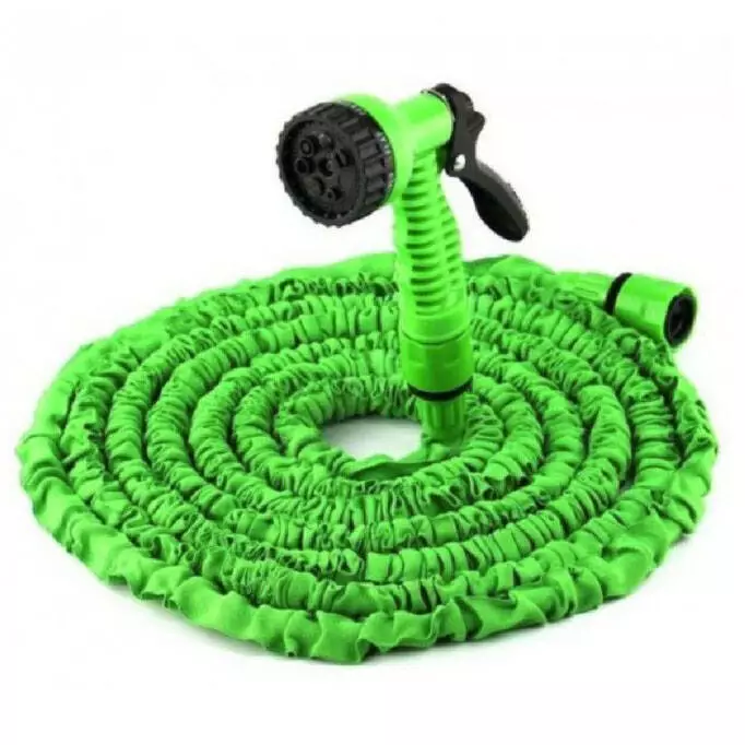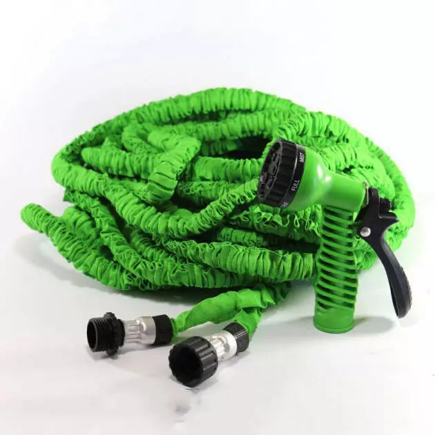 - Как только подсоедините шланг к системе полива и включите кран с водой, длина и ширина шланга автоматически, почти мгновенно, увеличиваются втрое. Например, шланг длиной 5 метра – значит, в процессе полива он автоматически растягивается до 15 метров и соответственно в 3 раза увеличится в диаметре.