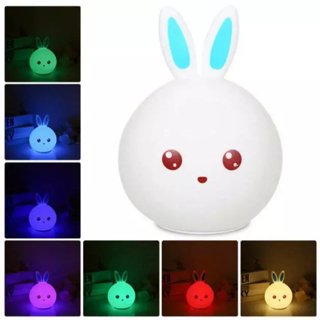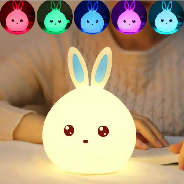 Силиконовый Ночник светильник ЗАЙЧИК детский LED лампа 7 цветов с АККУМУЛЯТОРОМ