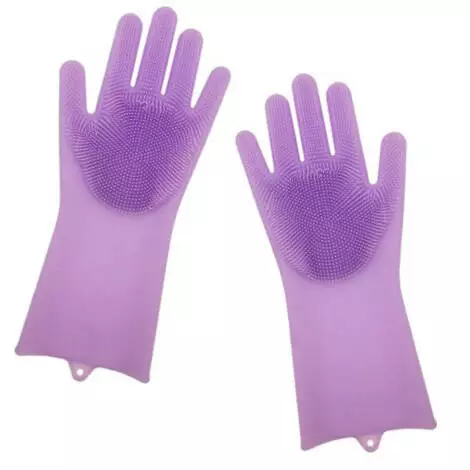Силиконовые перчатки Magic Silicone Gloves для уборки чистки мытья посуды для дома. Цвет: фиолетовый