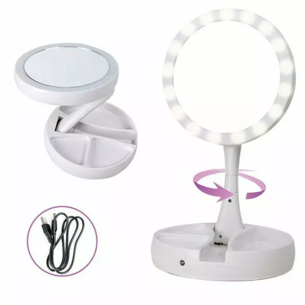 - Складной: наше зеркало рукоятке для удобства и основание имеет 3 отделения для хранения аксессуары красоты.
