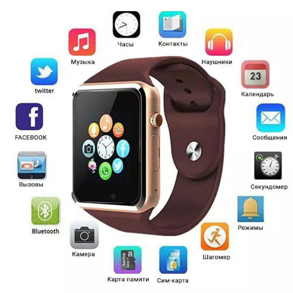 Смарт-часы Smart Watch A1 умные электронные со слотом под sim-карту + карту памяти micro-sd. Цвет: золотой