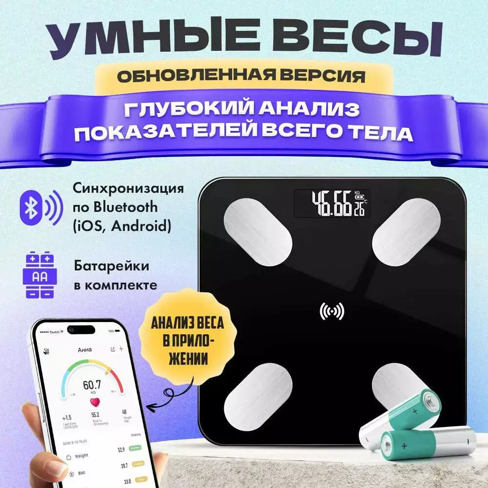 Смарт весы напольные, электронные Domotec MS-2017A с приложением на телефон, до 180 кг