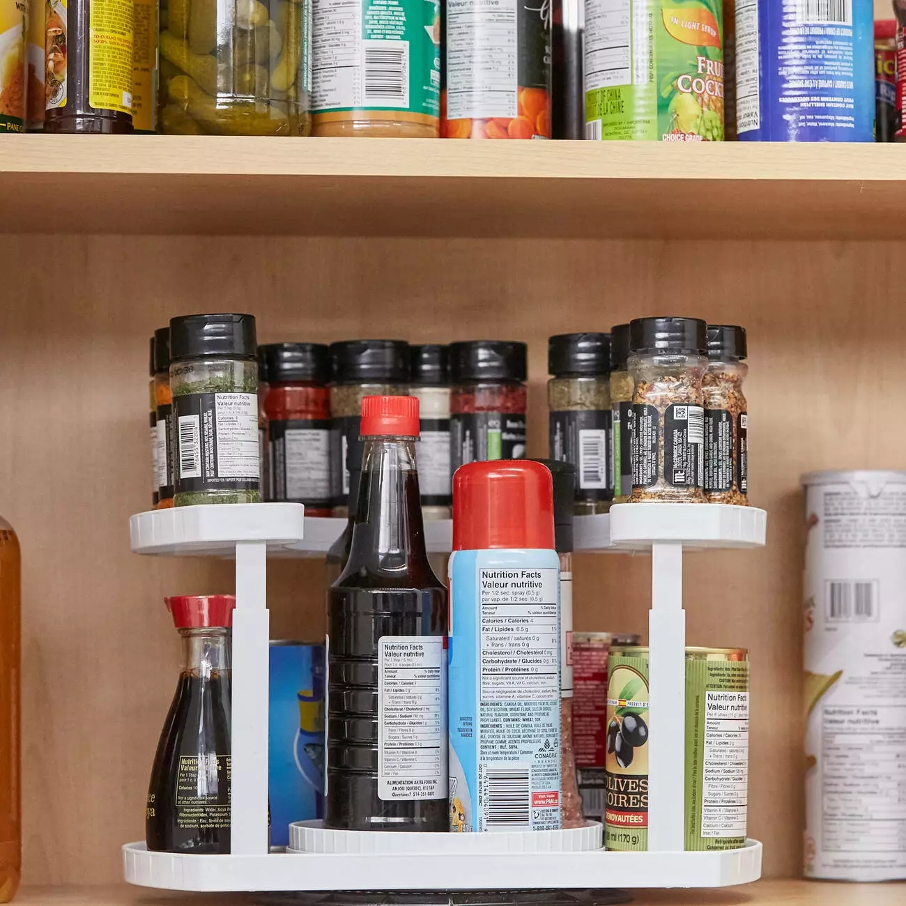 Спецовница Spice Spinner Two-Tiered Spice Organizer аксессуар поможет организовать пространство внутри шкафа и улучшить доступ к специям и консервации. Полка-органайзер поможет организованно и удобно хранить специи, пищевые добавки и т.п.
