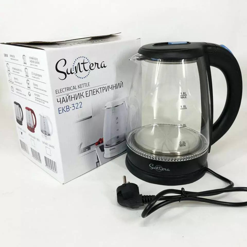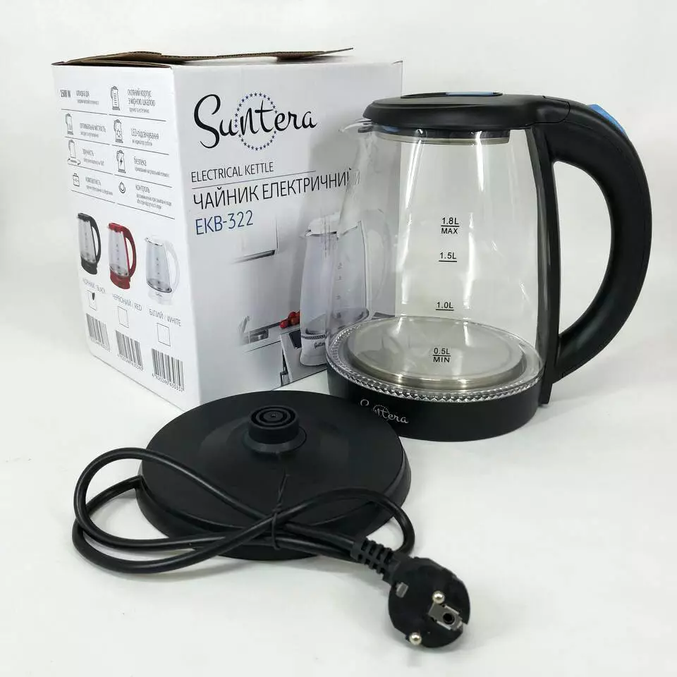 Стеклянные электрические чайники с подсветкой Suntera EKB-322B, чайники с подсветкой. Цвет: черный