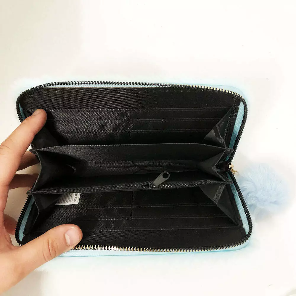 Внутри кошелек имеет несколько отделений для купюр, что позволит быстро и аккуратно организовать внутреннее пространство с купюрами. Для удобства аксессуар имеет крупную молнию, пользоваться которой очень удобно. Мех сверху изделия дополнительно декорирован бусинками разной величины.