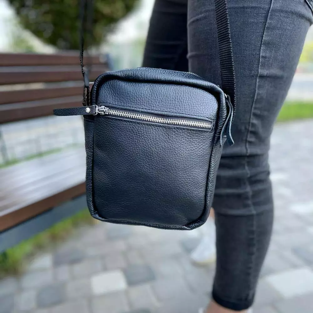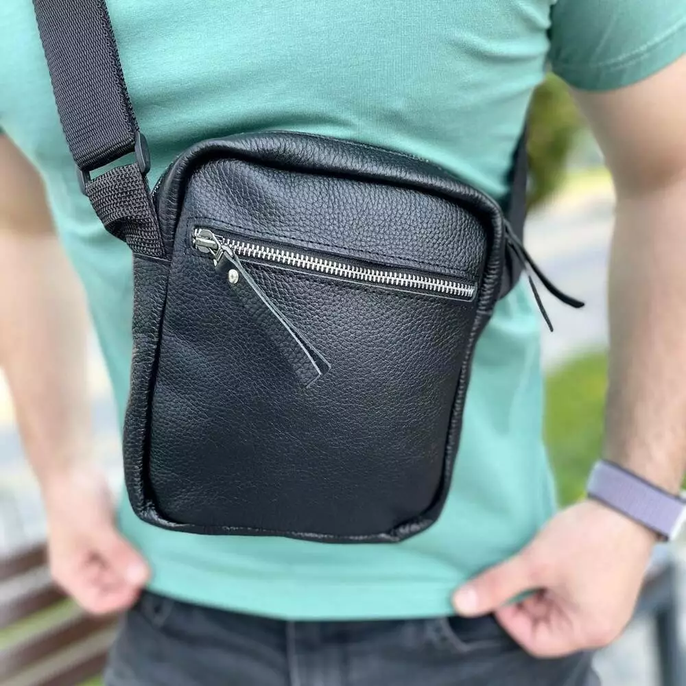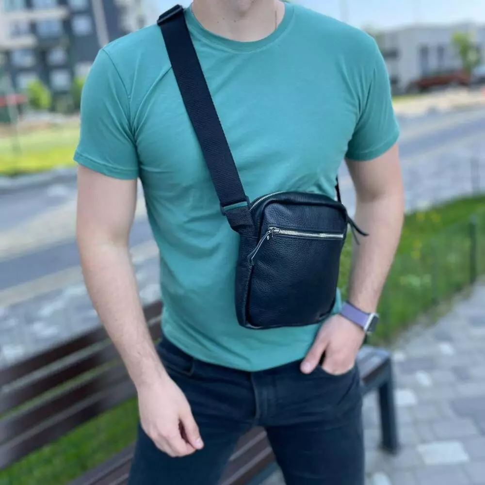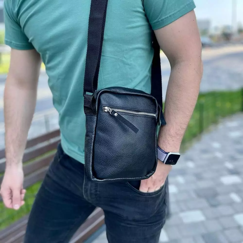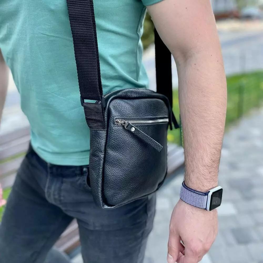 Сумка из натуральной кожи мужская, мессенджер кожаный чёрный, качество