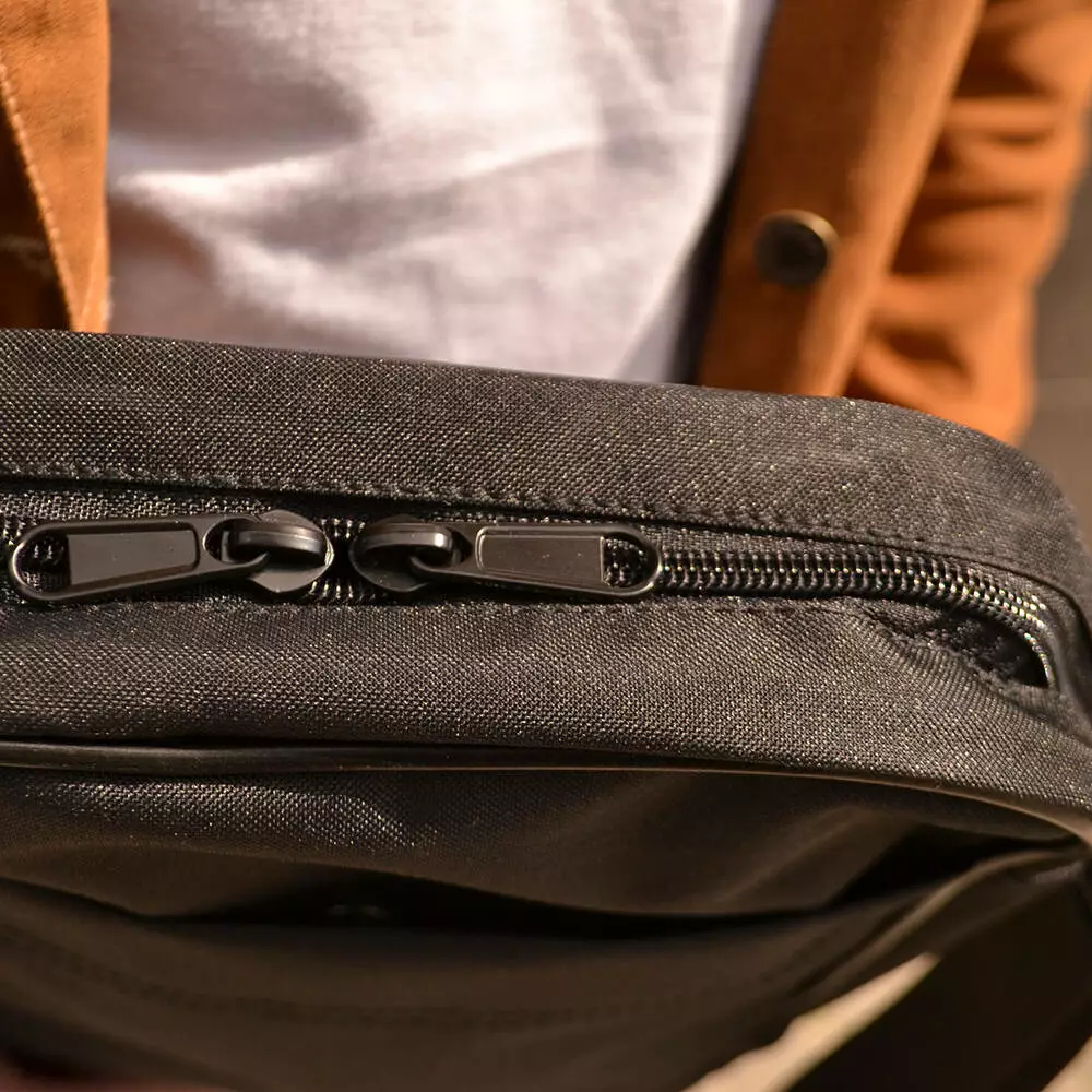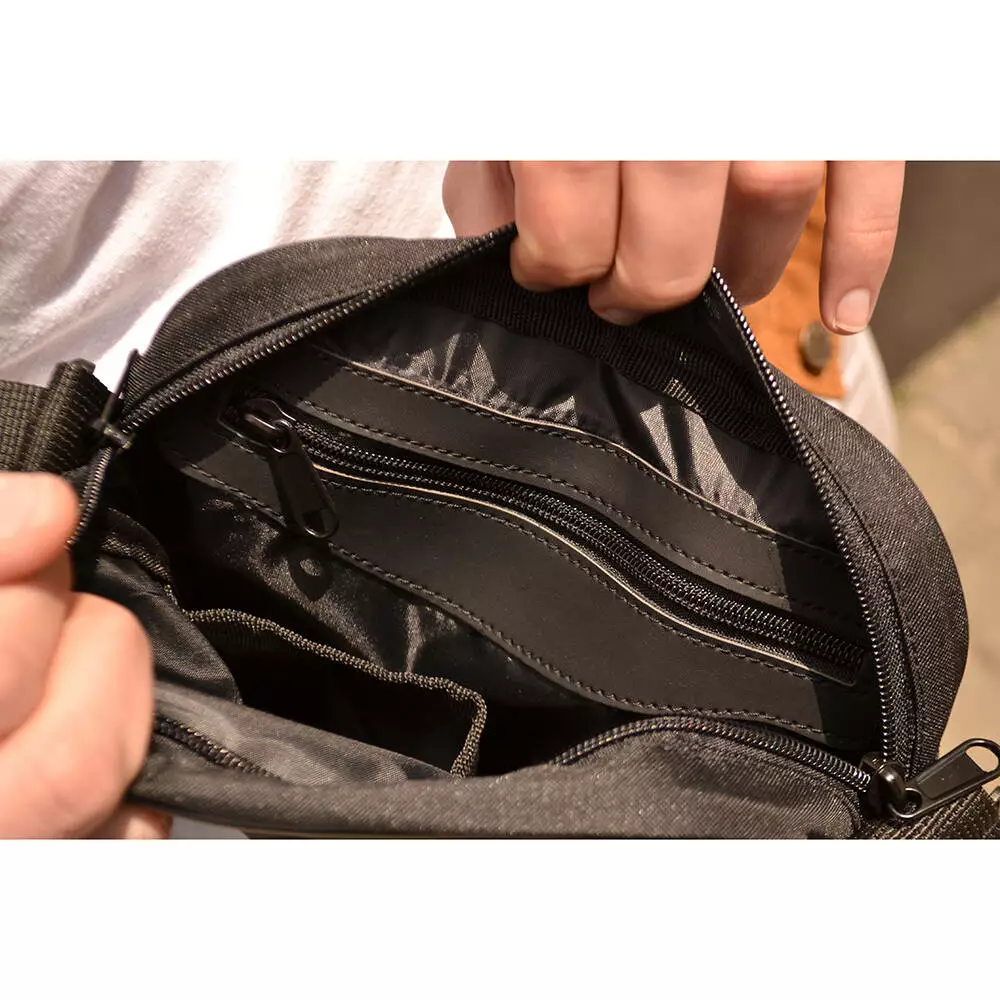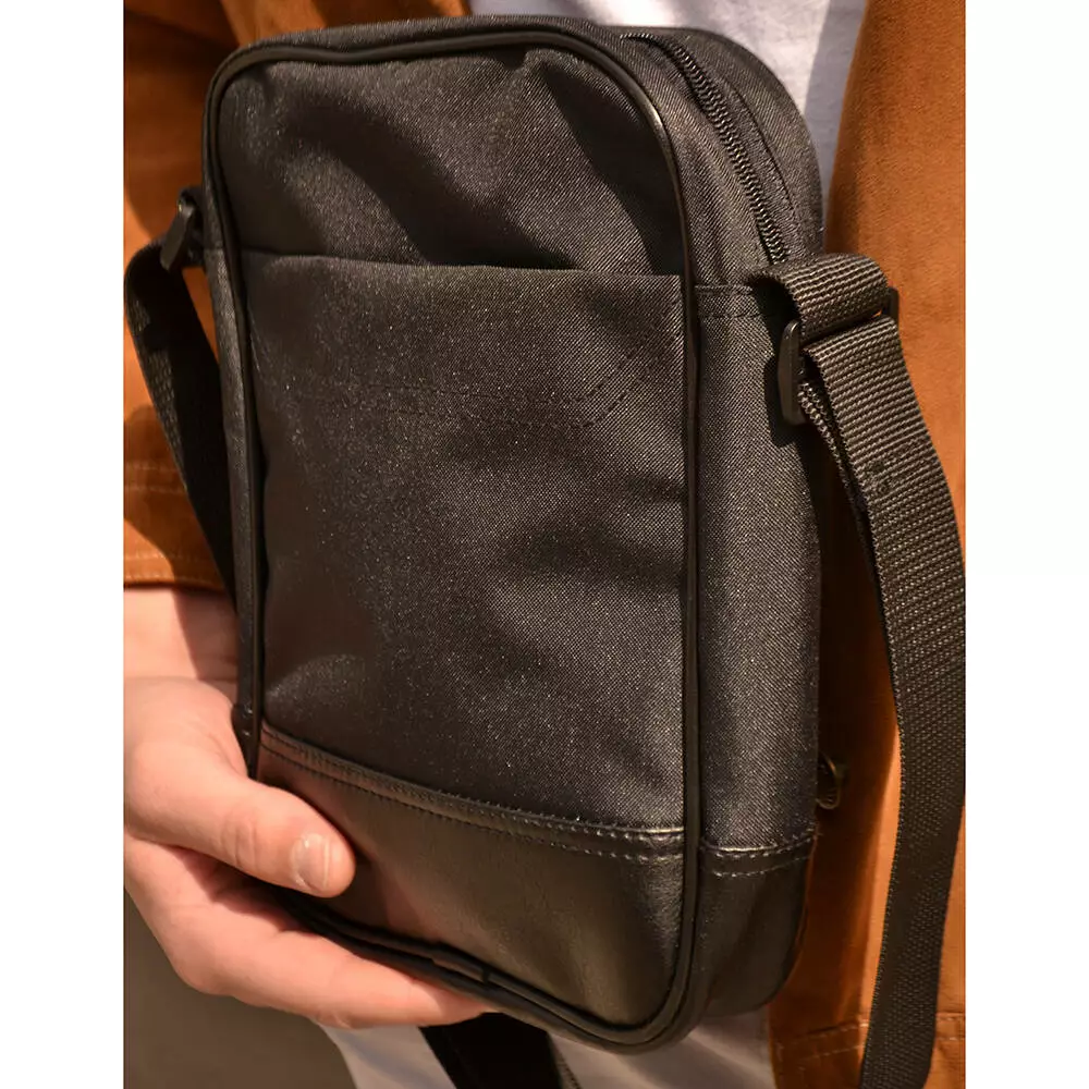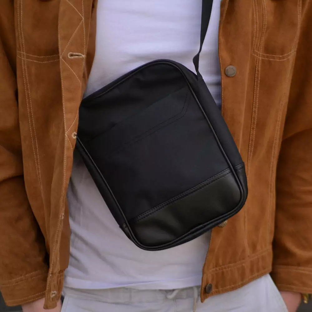 Сумка-мессенджер из эко-кожи+ткани. Модель №2. Цвет: черный