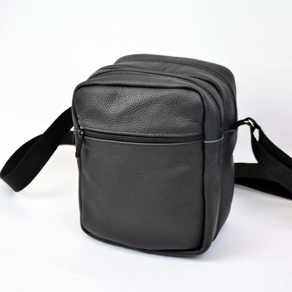 Эта элегантная сумка мессенджер изготовлена из высококачественной натуральной кожи флотар черного цвета. Благодаря своим средним размерам (высота 22 см, ширина 17 см, толщина 11 см), она идеально подходит для ежедневного использования и вмещает много разных вещей.