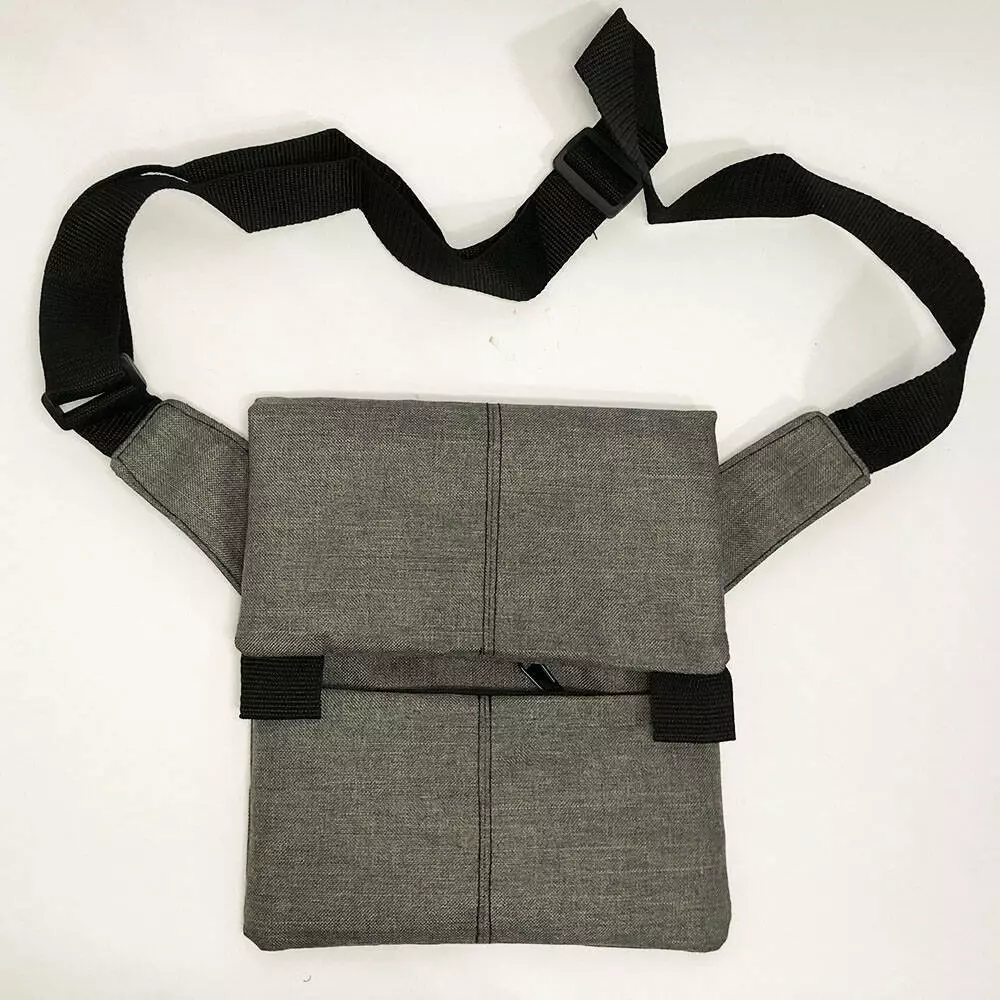 Сумка имеет удобный и практичный ремешок, который можно отрегулировать по длине благодаря специальному фиксатору, поэтому Вы сможете её носить как на уровне пояса, так и на уровне грудной клетки для быстрого доступа к важным элементам, таким как: фонарик, газовый баллончик или же пневматический пистолет.
