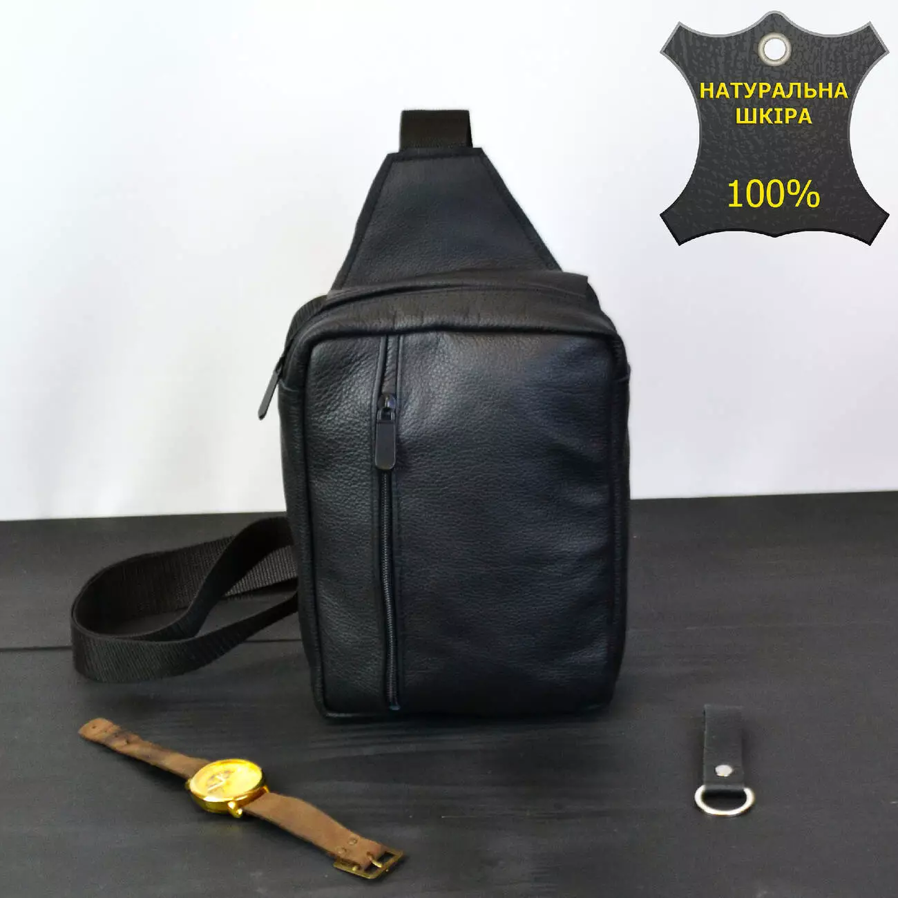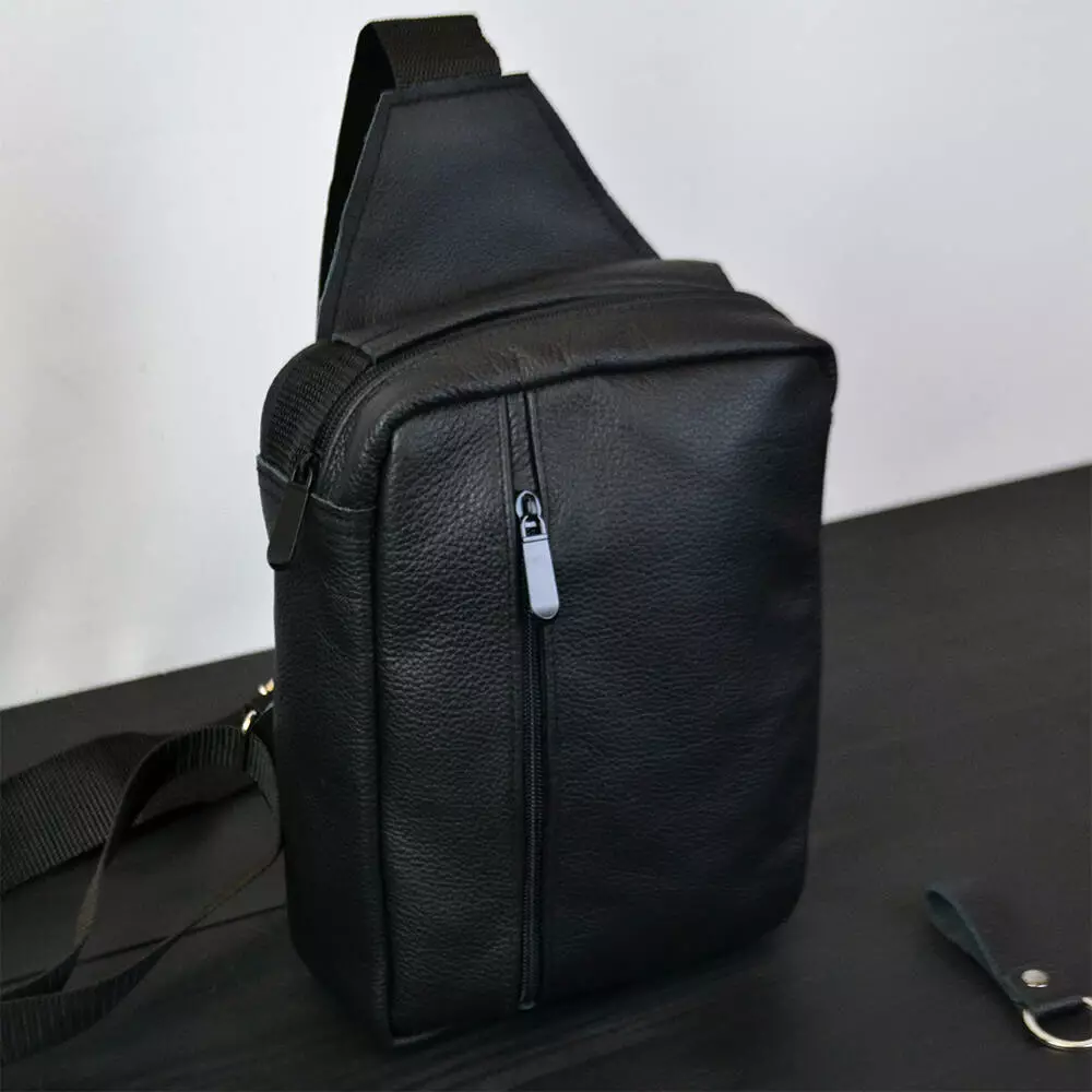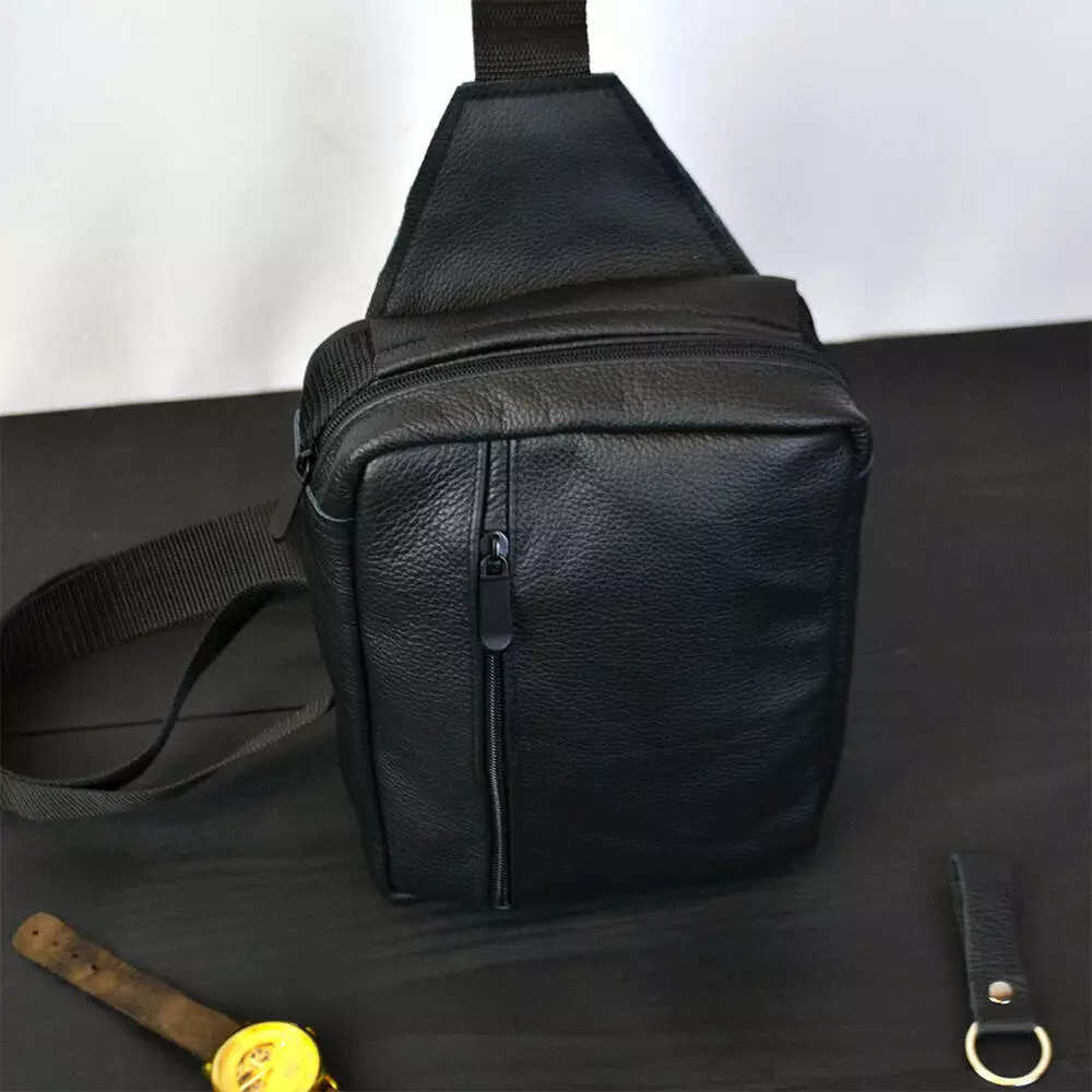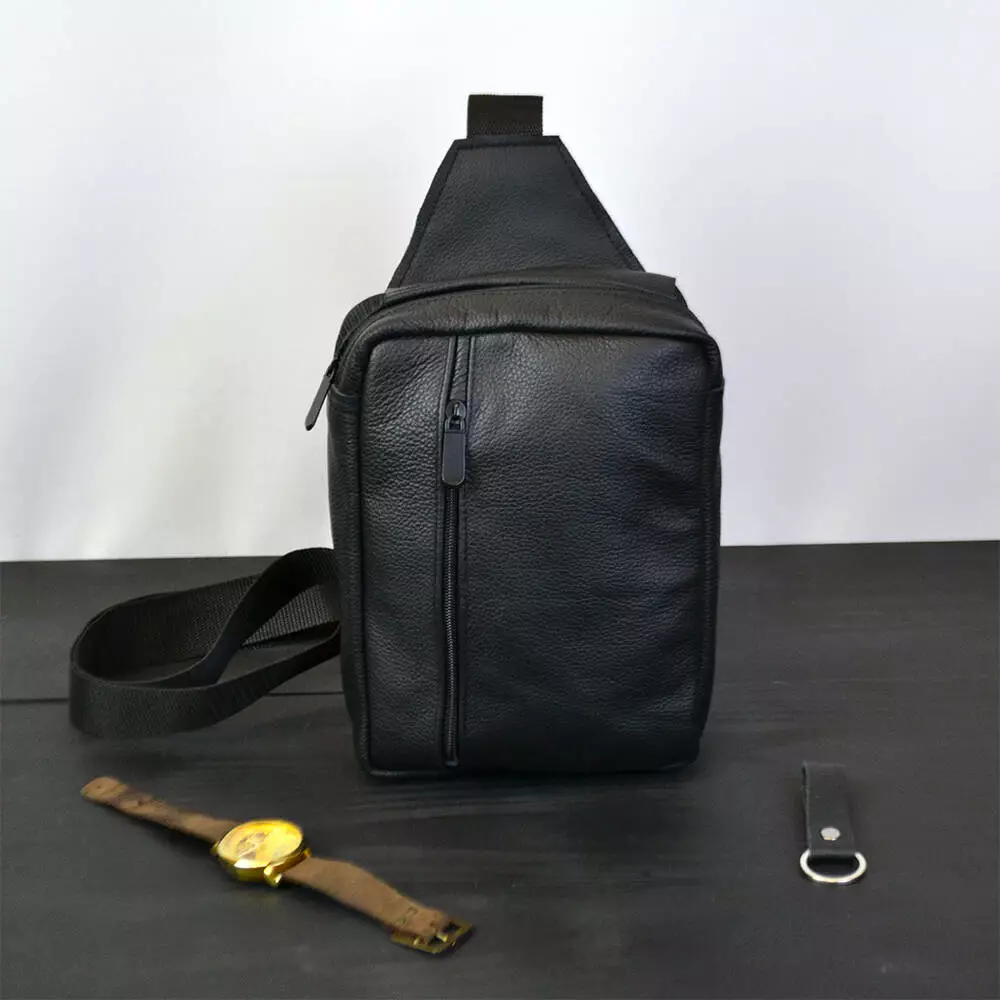 Мужская черная сумка-слинг из натуральной кожи – элегантный и практичный аксессуар для стильного мужчины. Изготовленная из высококачественной натуральной кожи, эта сумка отличается не только изысканным внешним видом, но и надежностью.