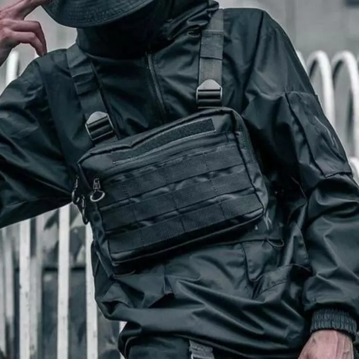 Сумка жилет на грудь довольно вместительная. В нее легко поместяться телефон, ключи, бумажник и другие нужные мелочи, причем вы сможете быть на 100% уверены в их сохранности: они всегда будут у вас перед глазами, и в нужный момент достать какую-либо вещь совершенно не составит труда.