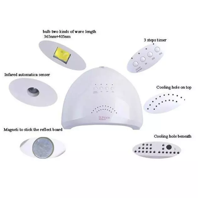 LED лампа SUNone - универсальный, мощный прибор для полимеризации. Теперь нет необходимости приобретать несколько ламп, которые сушат разный материал с разной скоростью. SUNone – лампа нового поколения, которая способна сушить как LED гели и гель-лаки, так и UV материалы для наращивания ногтей. Лампа Sun One мощностью 48w с 30 светодиодными лампочками используется в маникюрном сервисе и для домашнего применения.